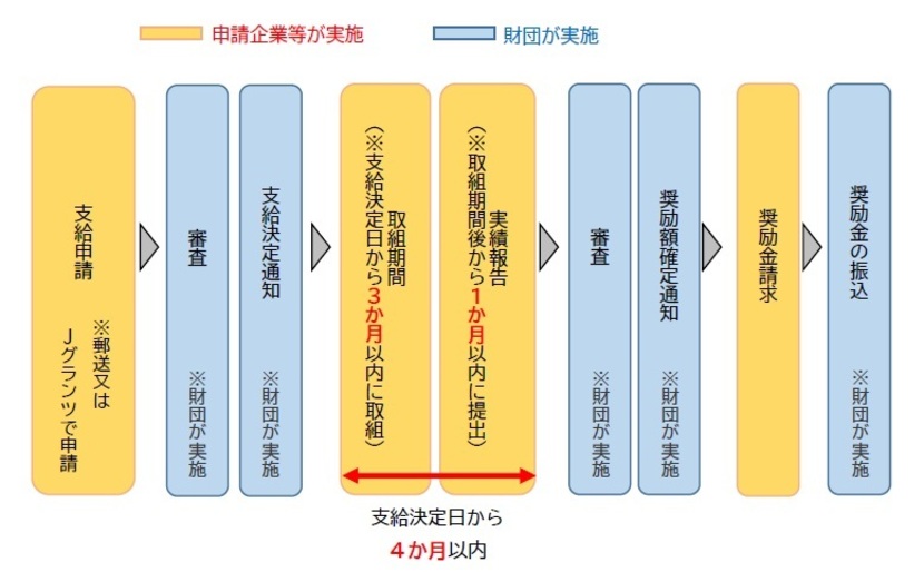 支給決定日から4か月以内 (取組期間終了後から1か月以内)に実績報告書を提出してください。